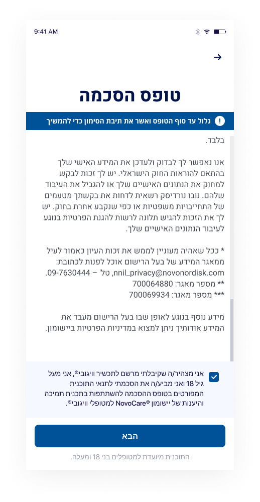 שלב 2: אשרו את טופס ההסכמה