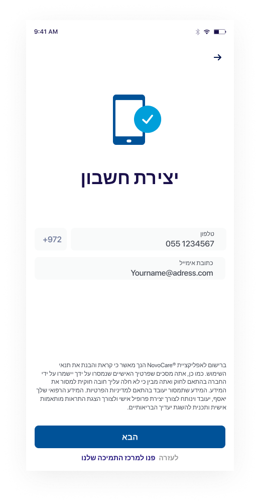 שימו לב למלא כתובת אימייל ומספר טלפון אמיתיים