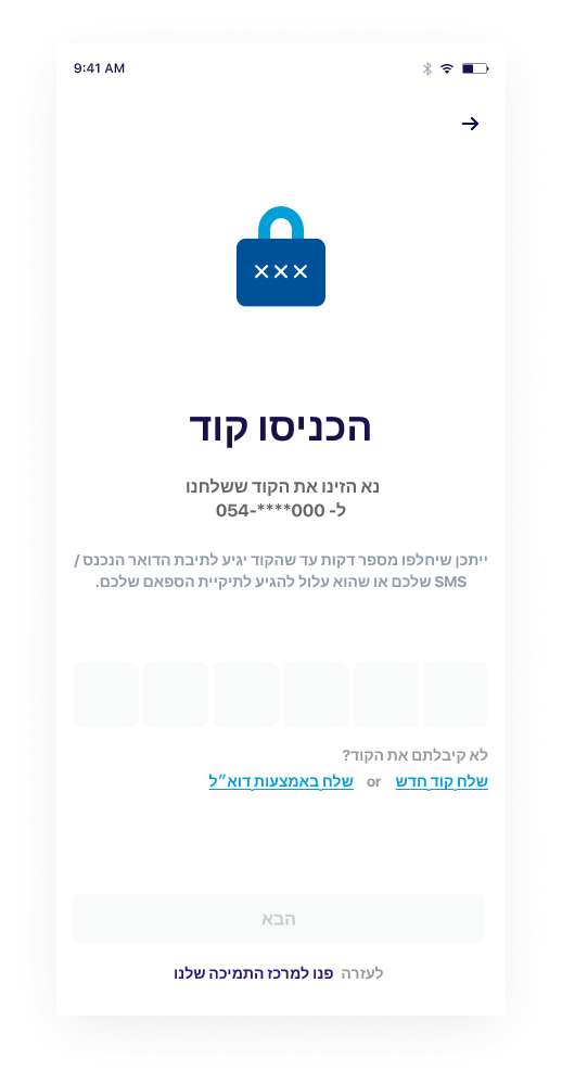 שלב 5: אמתו את הפרטים שלכם באמצעות קוד האימות שנשלח אליכם בהודעת אימייל או טקסט