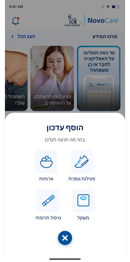 תכונת המסע ב-NovoCare, מאפשרת לכם לעקוב אחר מידע היסטורי של השימוש בתרופה, התקדמות ועוד. הנה מה שתוכלו לעשות עם תכונה זו: